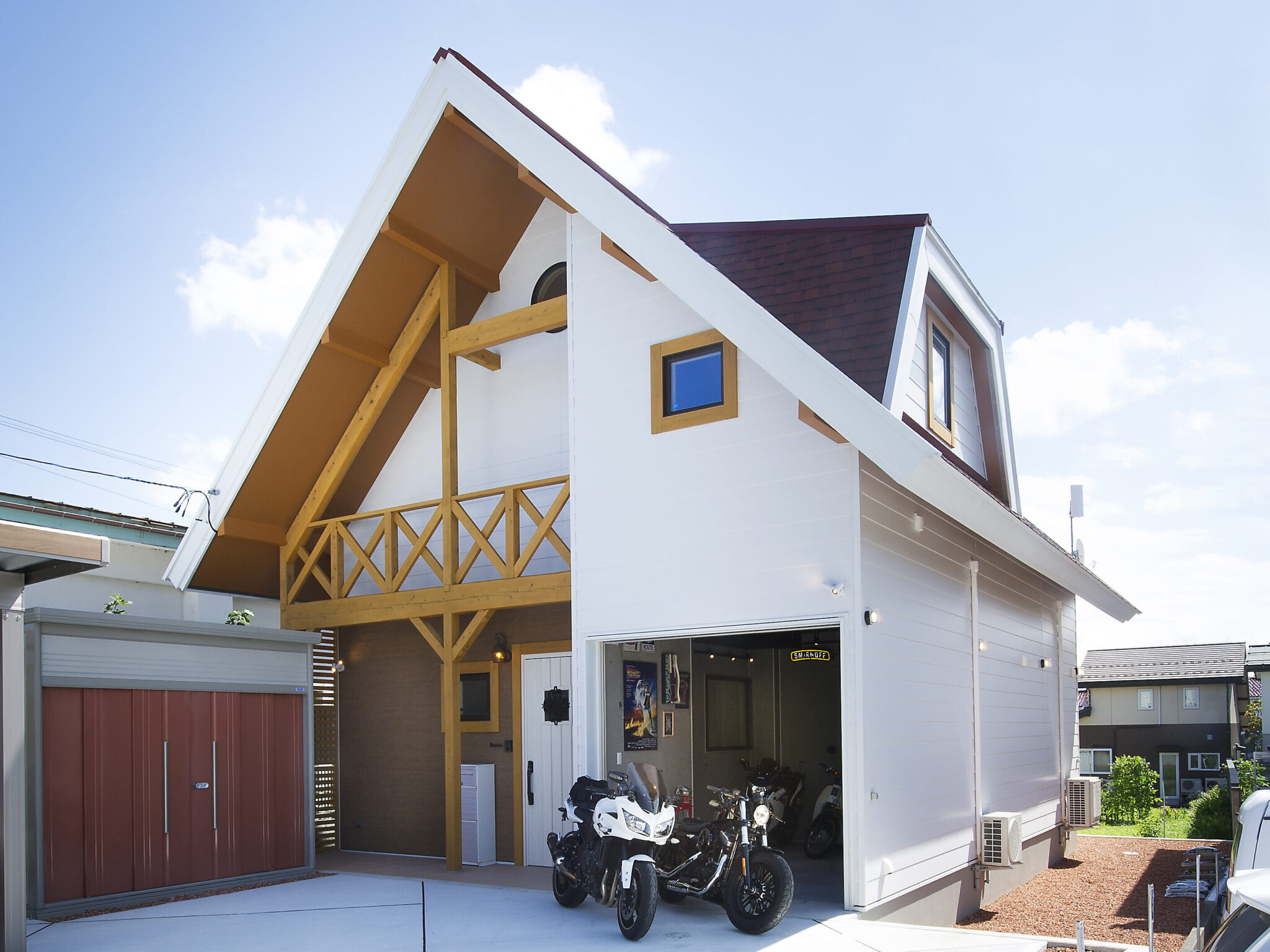 新築 鶴岡市 O様邸 2026.01.08 愛する家族とバイクと暮らすオシャレな住まいログハウス風 中央に寄せたい 3LDK(ファミリールーム+ロフト+ビルトインガレージ)延床面積:126.63㎡(38.30坪) ■要望を叶える高い設計力と自社一貫施工による大きな安心感■無垢材の床、木肌が美しい天井など、木をふんだんに使った家づくり■室内からも眺められる、趣味を楽しむバイクガレージ■吹き抜けと照明計画による開放的で優雅なリビング空間 こちらの住宅は、フォトコンテストで優秀賞を受賞しました。受賞のご報告記事もあわせてご覧いただけます。 【受賞報告】北海道・東北フォトコンテスト2025で優秀賞を受賞しました!アイジー工業株式会社主催「北海道・東北フォトコンテスト2025」にて、当社施工の住宅が優秀賞(上位5社)を受賞。 カテゴリートップへ戻る